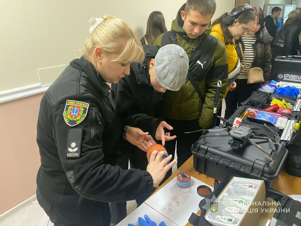 У Одесі та Ізмаїлі представники правоохоронних органів організували заходи для молоді, щоб ознайомити їх з діяльністю поліції. В рамках Дня відкритих дверей у професійному коледжі одного з університетів, фахівці з криміналістики провели захід для старшокласників. Вони продемонстрували, як працюють на місцях подій, а також показали вміст криміналістичних валіз, інструменти для фіксації доказів, дактилоскопічні набори та засоби фото- й відеофіксації.