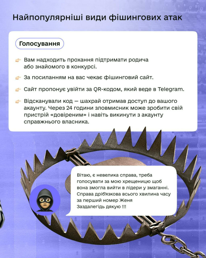 Під час війни Telegram став не лише джерелом новин, але й місцем, де активно діють шахраї. Більше 70% українців звертаються на гарячу лінію цифрової безпеки Nadiyno.org з питаннями про зламані акаунти в Telegram.