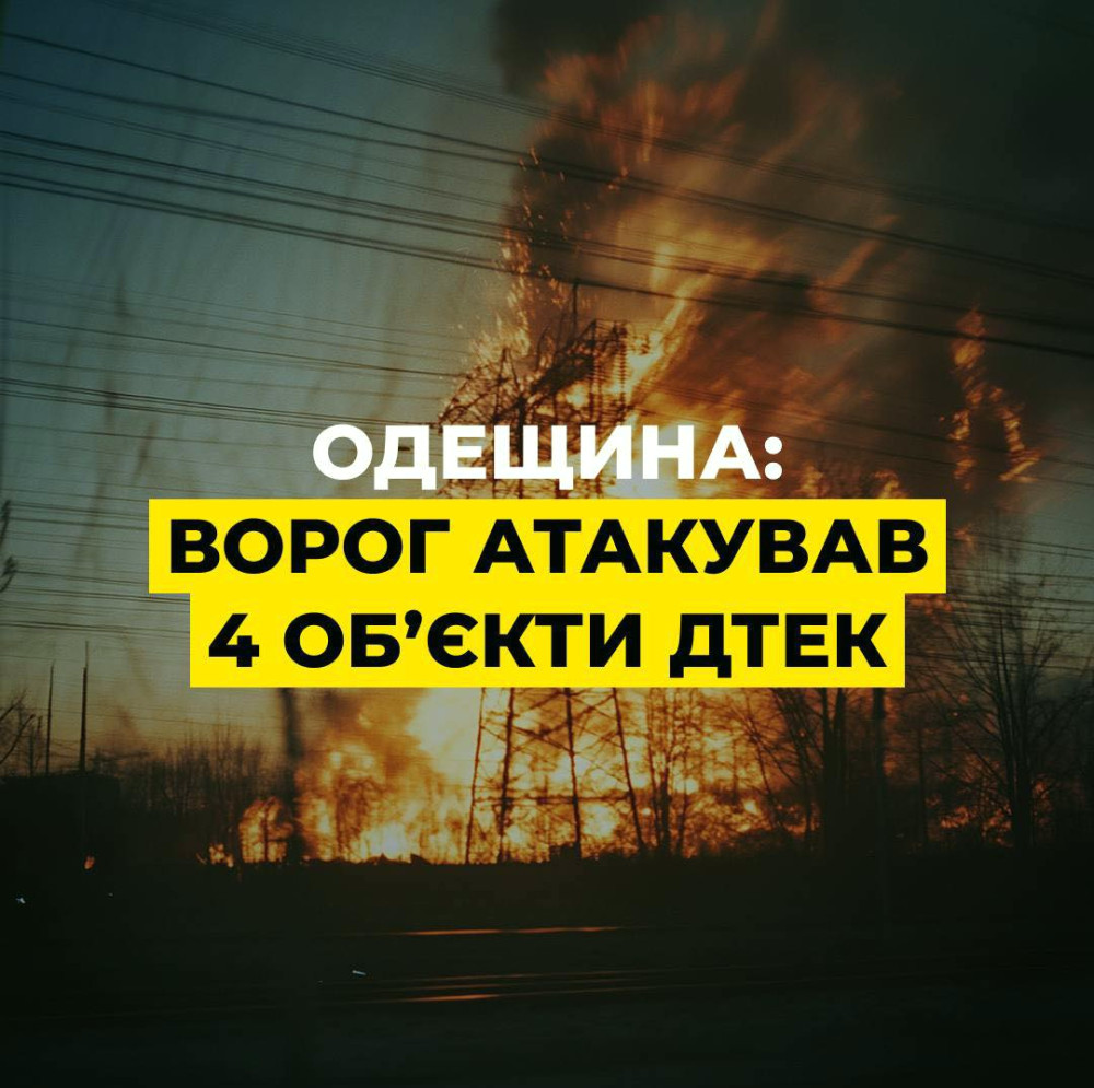 «Противник не зупиняється у своїх спробах завдати шкоди енергетичній системі Одещини. Під час нічної атаки зазнали удару чотири енергетичні установи ДТЕК», - йдеться у заяві.